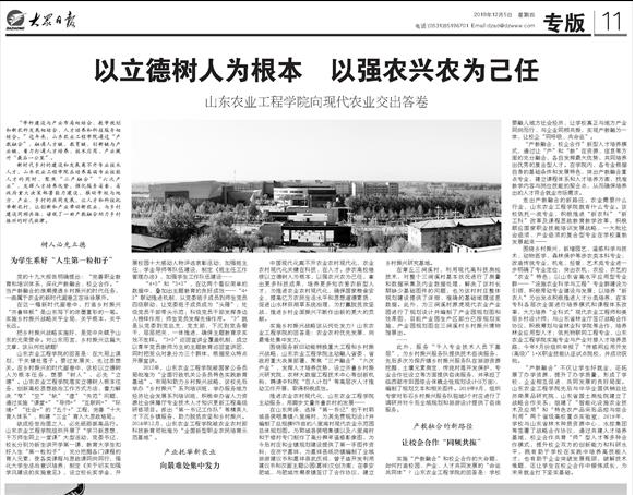 12月5日,大众日报以《以立德树人为根本以强农兴农为己任—437ccm必赢国际官网向现代农业交出答卷》为题对必赢进行了专题报道。同时,“学习强国”山东平台、大众网等媒体第一时间进行转载。