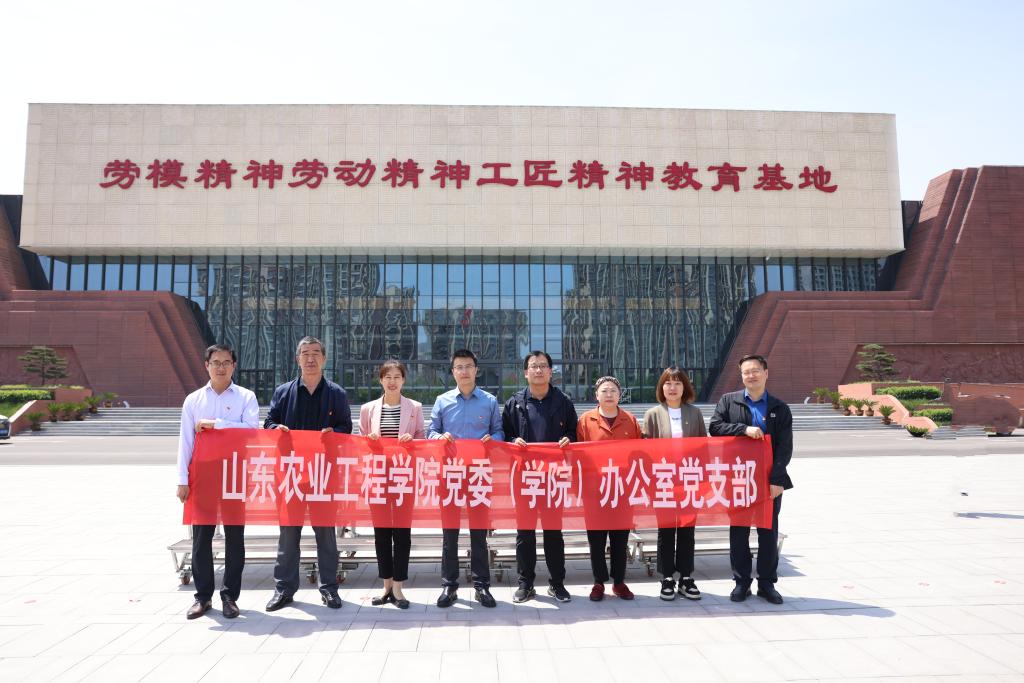 为深入开展学习贯彻习近平新时代中国特色社会主义思想主题教育,根据党委(学院)办公室党支部工作安排,5月9日上午,支部全体党员赴齐河县劳模精神劳动精神工匠精神教育基地开展主题党日活动。