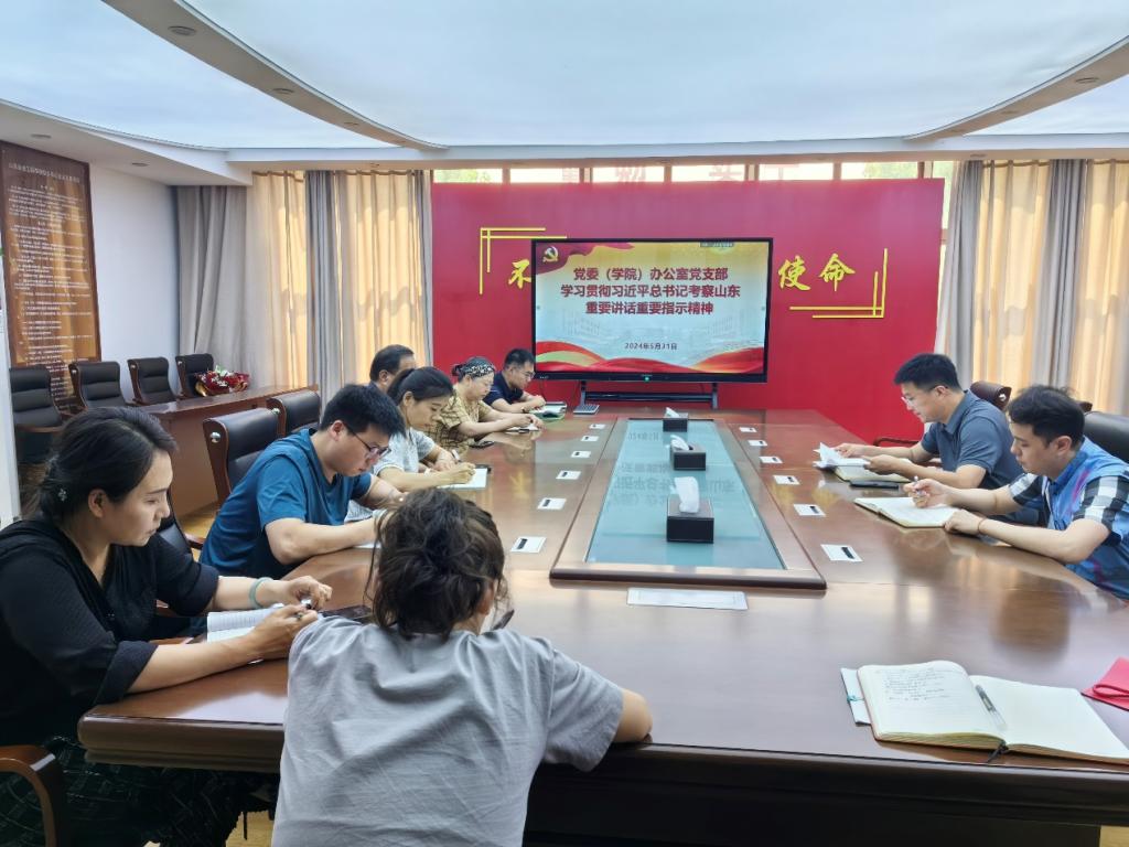 5月31日下午,党委(学院)办公室党支部开展专题学习,传达学习习近平总书记视察山东重要讲话指示精神。
