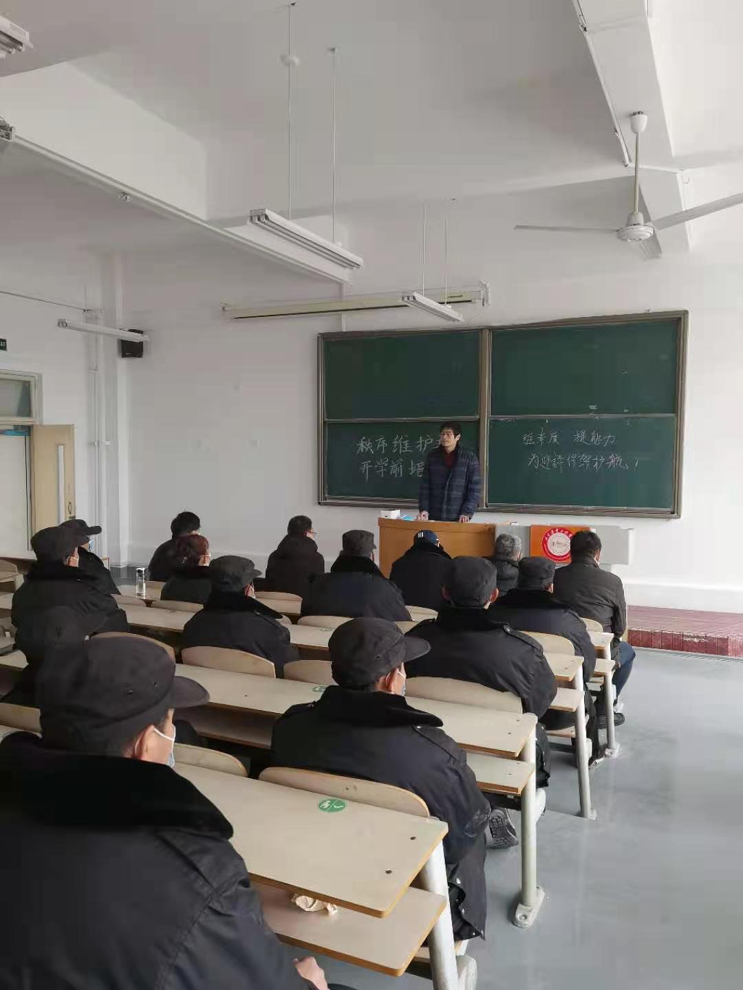 此次培训结合当前高校安全工作形势及两会期间上级工作要求对安保人员岗位职责、规章制度、行为规范、疫情防控、突发事件处理、防暴反恐、器械使用方法和日常防火、初期火灾扑救等知识进行培训。