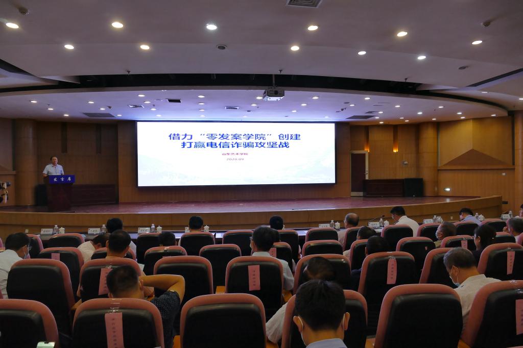 山东艺术学院副院长兰绍彤代表山东艺术学院校党委、行政作大会经验交流,介绍了山东艺术学院近几年来依托“零发案学院”创建工作,反电信诈骗工作的经验做法。一是注重顶层设计,科学构建“零发案学院”创建格局,将反电信网络诈骗列入重中之重;二是拓宽教育渠道,努力营造“零发案学院”创建氛围,使反电信网络诈骗深入人心;三是坚持多管齐下,不断推进“零发案学院”创建成效,对电信诈骗实施零容忍。