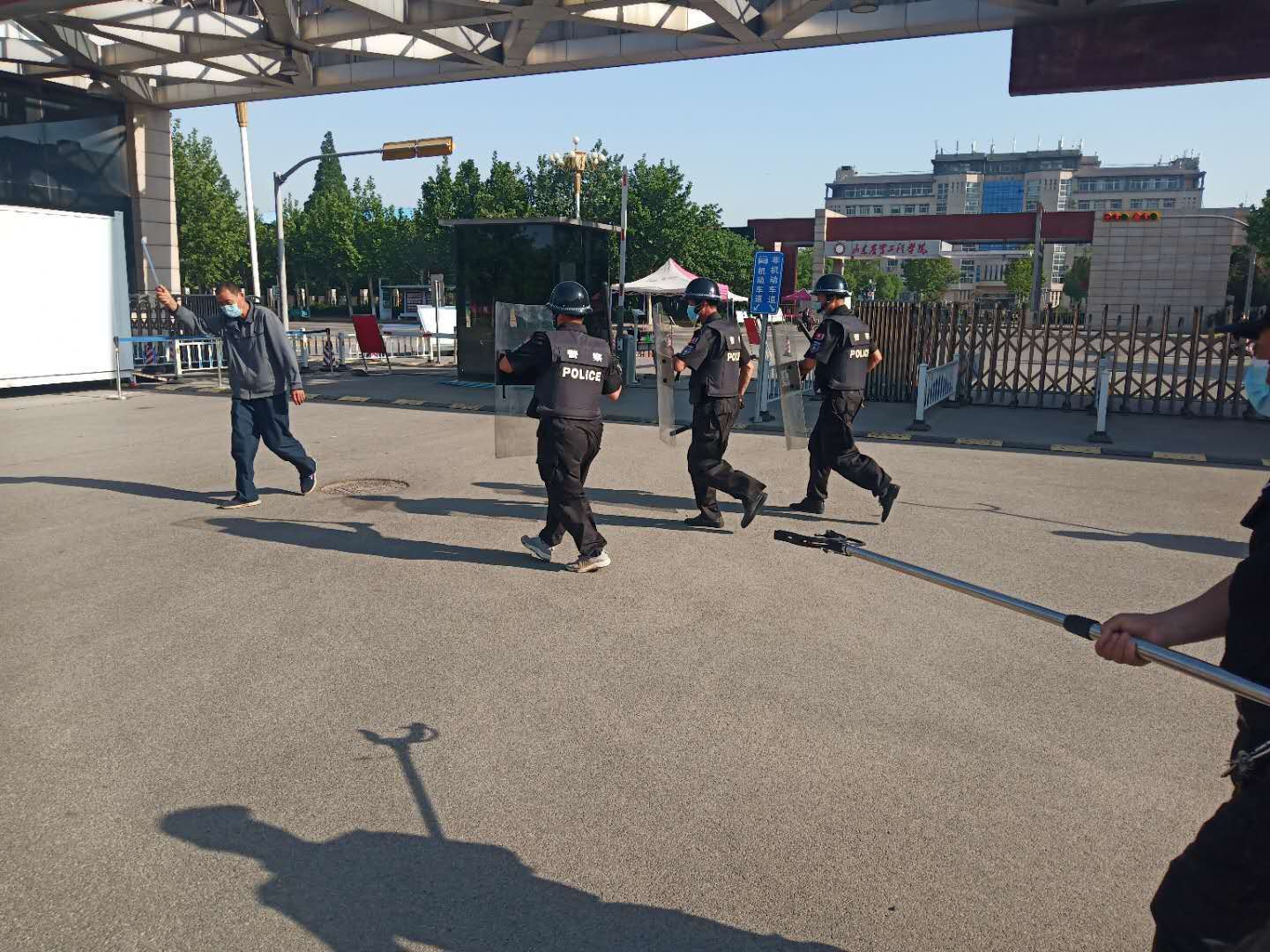 为进一步提高安保人员反恐防暴意识,提高应对校园暴力事件处置能力,最大限度减少突发事件对师生造成的伤害和损失,有力保障疫情期间和两会期间的学校安全稳定。5月22日上午,保卫处在北校区组织济发物业保安开展防暴恐应急专项培训和演练。
