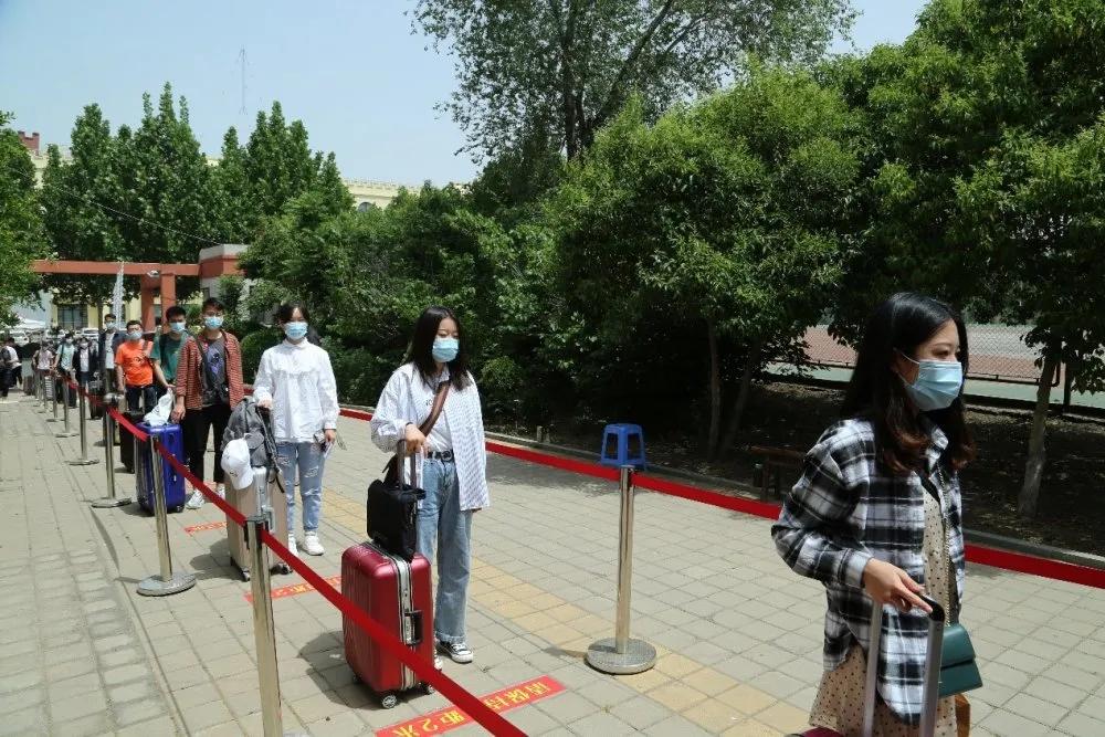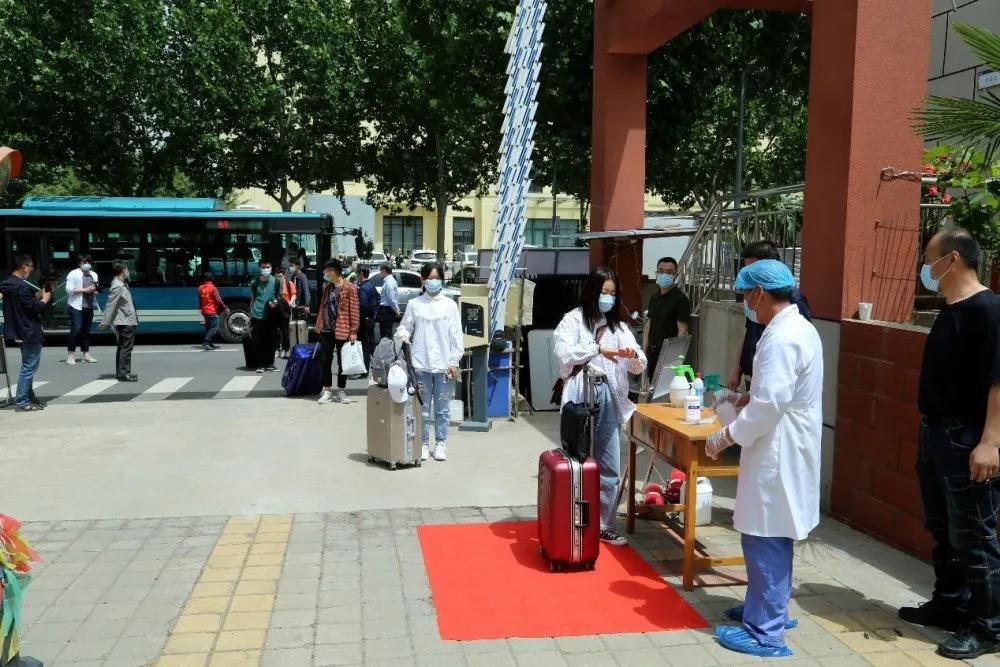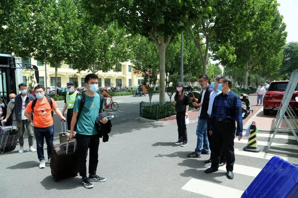 为减少交叉接触,学校引导学生家长即送即走,一律不进入校园。学校还专门安排专车前往火车站、机场迎接学生返校,接站时查验学生证或一卡通,测量体温并进行行李消毒后方可上车。