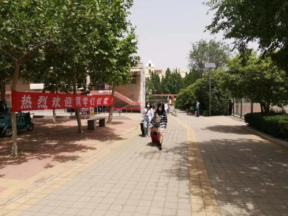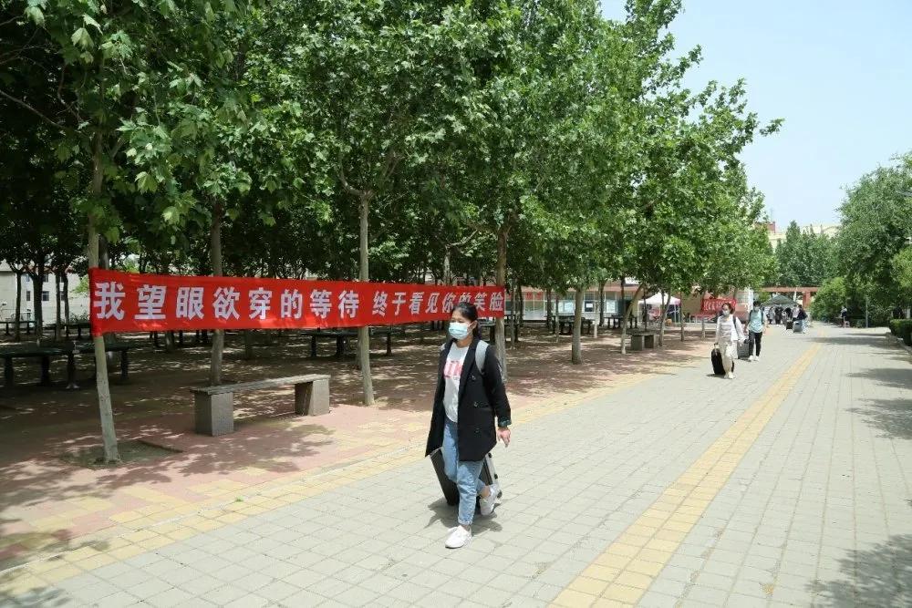 “我望眼欲穿的等待终于看见你的笑脸”“热烈欢迎同学们回家”……学校门口、校园主干道上,各类标语异常醒目。