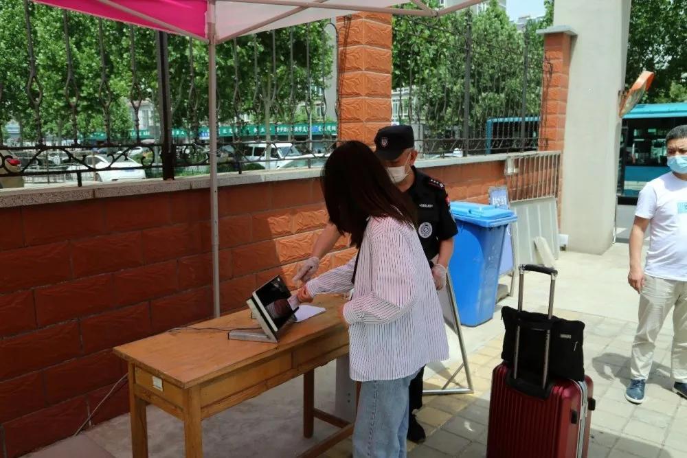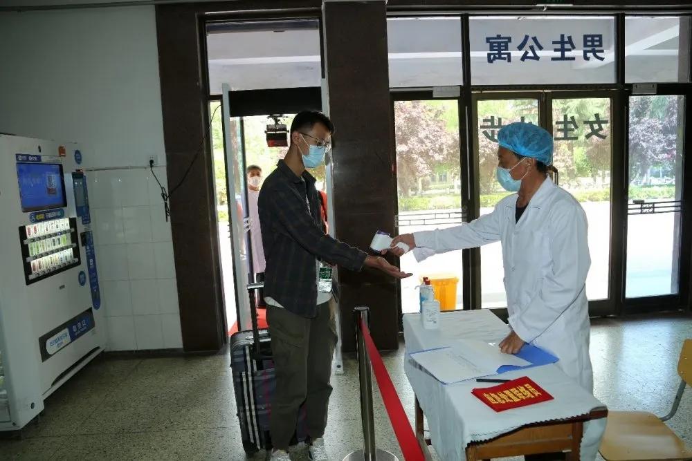 报到现场,出示健康码、量体温、消杀、填写承诺书等环节有条不紊。