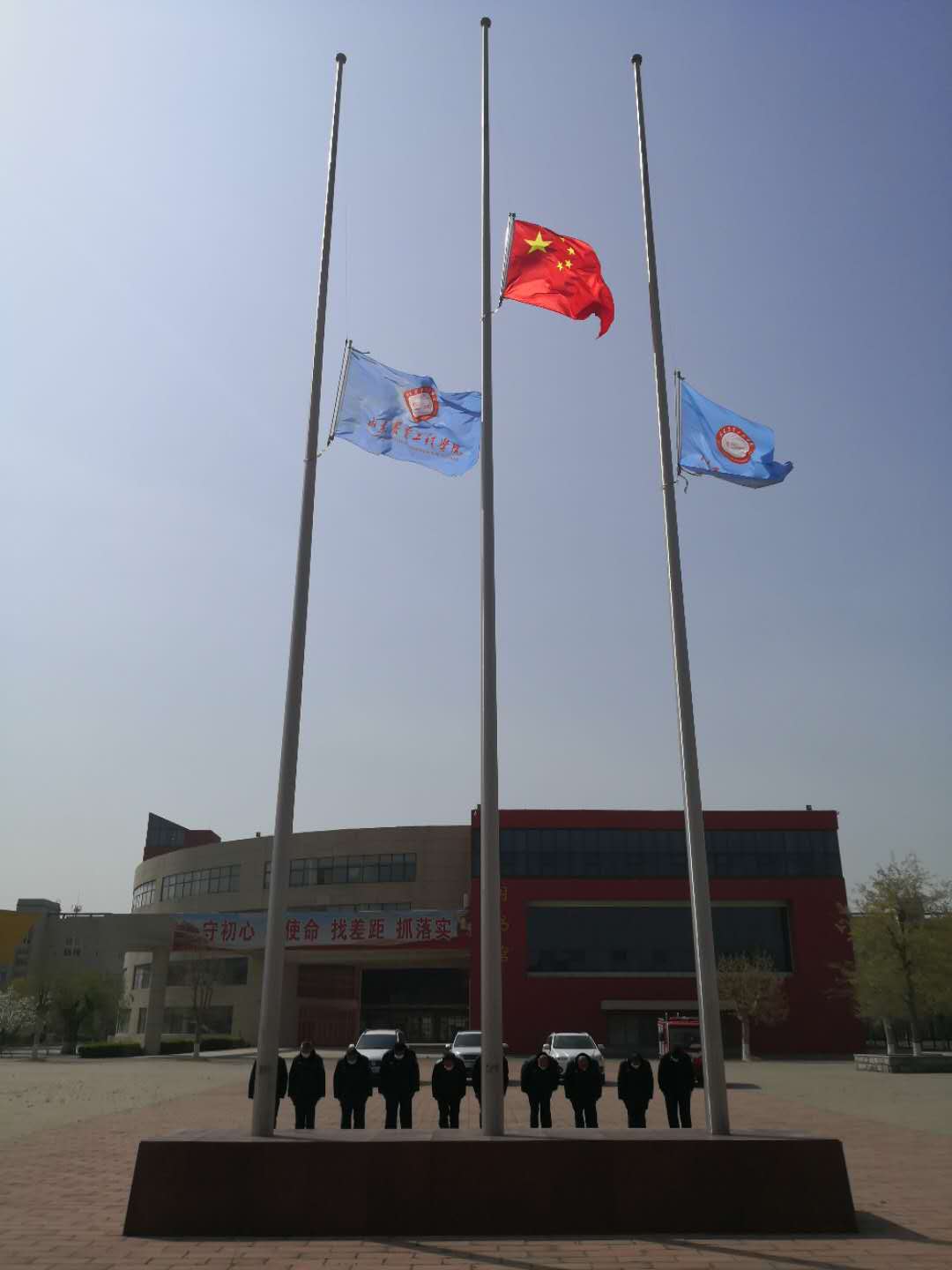 4月4日清晨,学校北校区国旗下半旗志哀,表达对抗击新冠肺炎疫情斗争牺牲烈士和逝世同胞的深切哀悼。