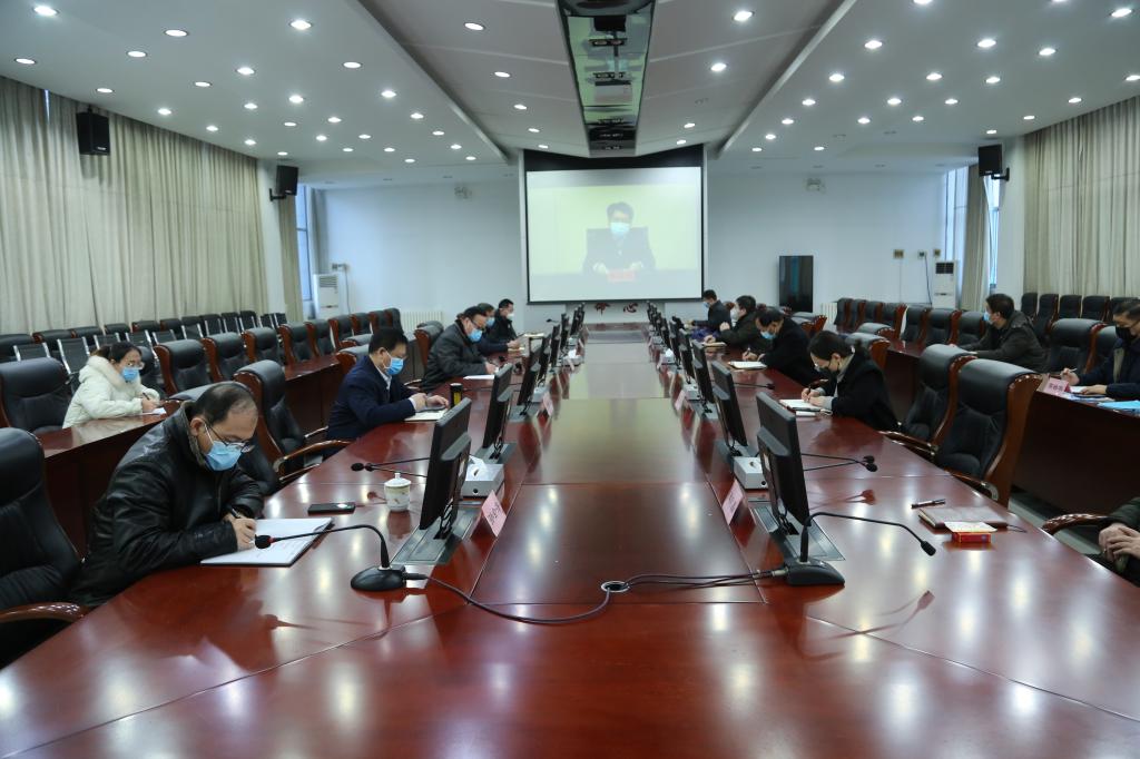视频会议结束后,学校即召开了贯彻落实会议精神部署会,对疫情防控工作进行再动员再安排。校防控领导小组组长、党委书记丁希滨和校长王西奎,副组长、党委委员、副校长杨振宁、张伟出席会议。