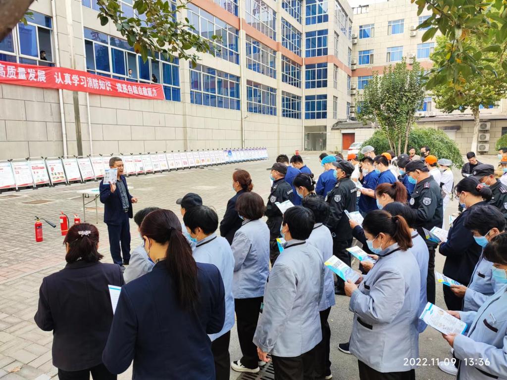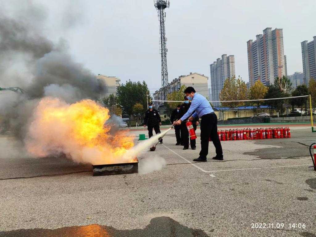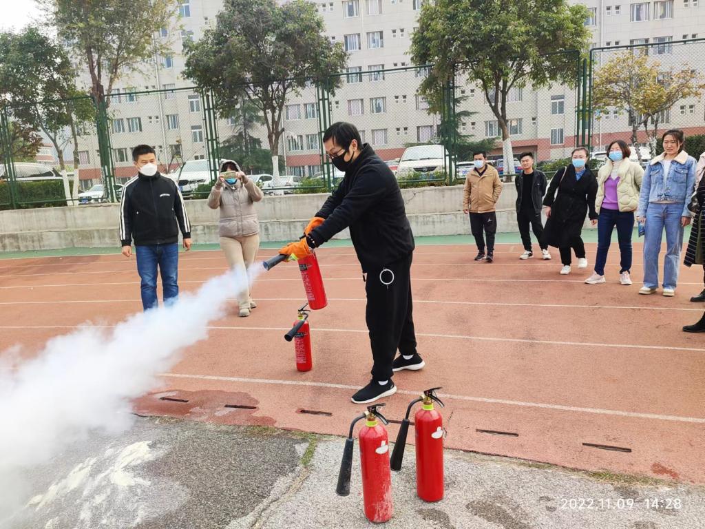 进一步学校消防教育培训和安全宣传常态化,增强全校师生员工的消防安全素质,保卫处11月9日在济南校区开展以“抓消防安全,保高质量发展”为主题的消防安全培训灭火实操演练活动。实验室管理人员和物业公司、餐厅从业人员参加活动。