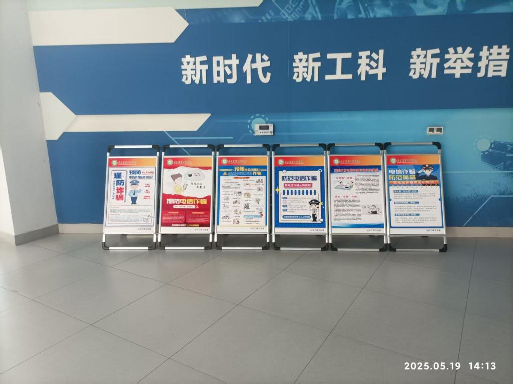 保卫处还特别制作了系列防骗指南展板,放置于各教学楼主要进出口醒目位置,通过真实案例揭秘“冒充老师”“虚假贷款”“网购退款”等常见骗局。用通俗语言解析诈骗话术,提醒师生牢记“三不”原则:不轻信、不透露、不转账。