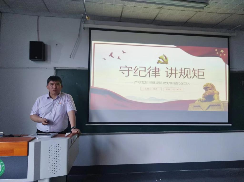 为扎实开展党纪学习教育,增强党员纪律意识和规矩意识,筑牢党员拒腐防变思想防线。5月23日下午,保卫处党支部书记徐波讲授党纪学习教育专题党课。