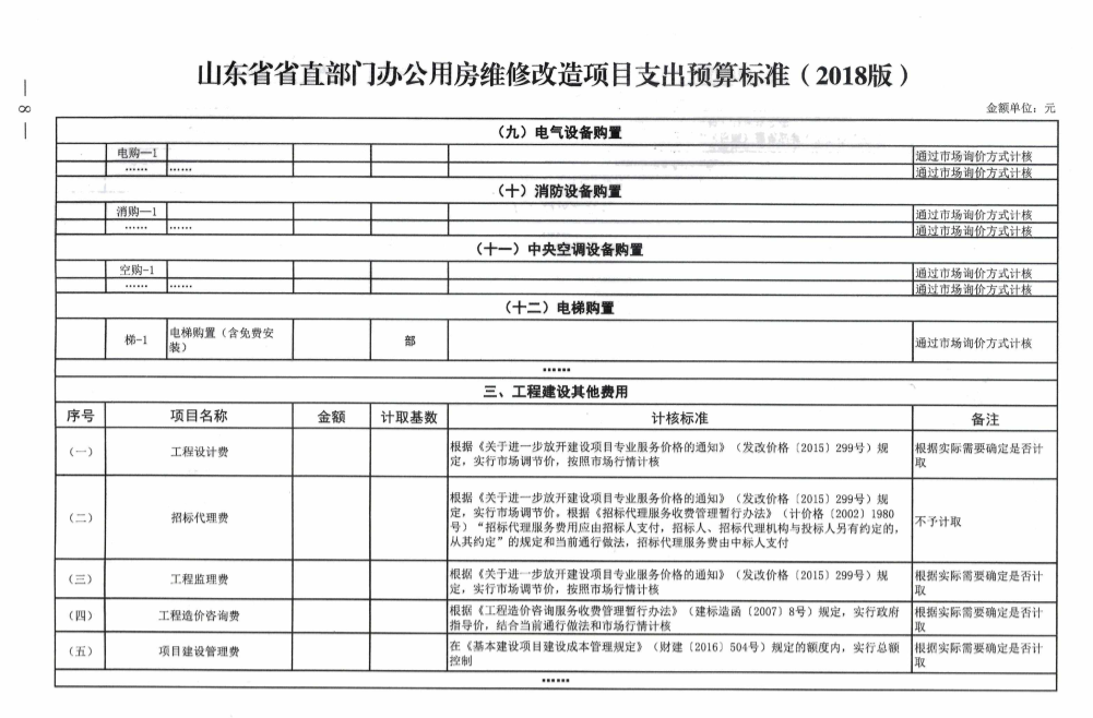 关于印发山东省省直部门办公用房维修改造项目支出支出预算标准(2018版)的通知