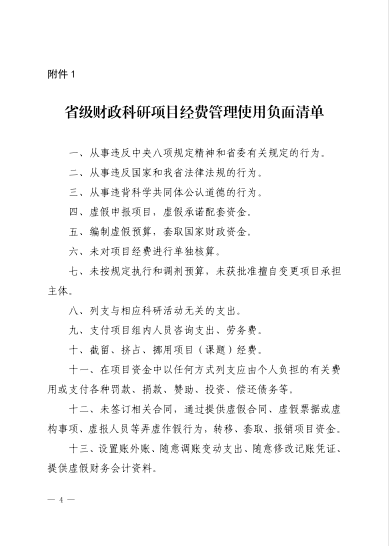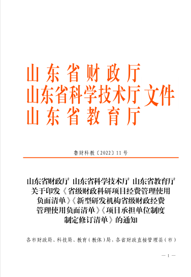 山东省财政厅 山东省科学技术厅 山东省教育厅 关于印发《省级财政科研项目经费管理使用负面清单》《新型研发机构省级财政经费管理使用负面清单》《项目承担单位制度制定修订清单》的通知
