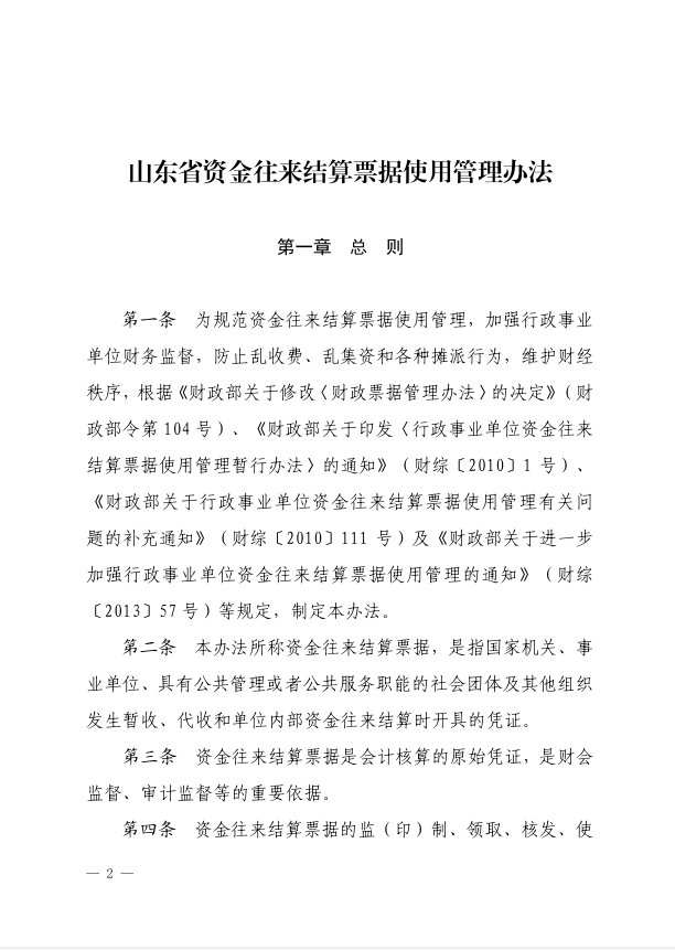 山东省财政厅关于印发山东省资金往来结算票据使用管理办法的通知