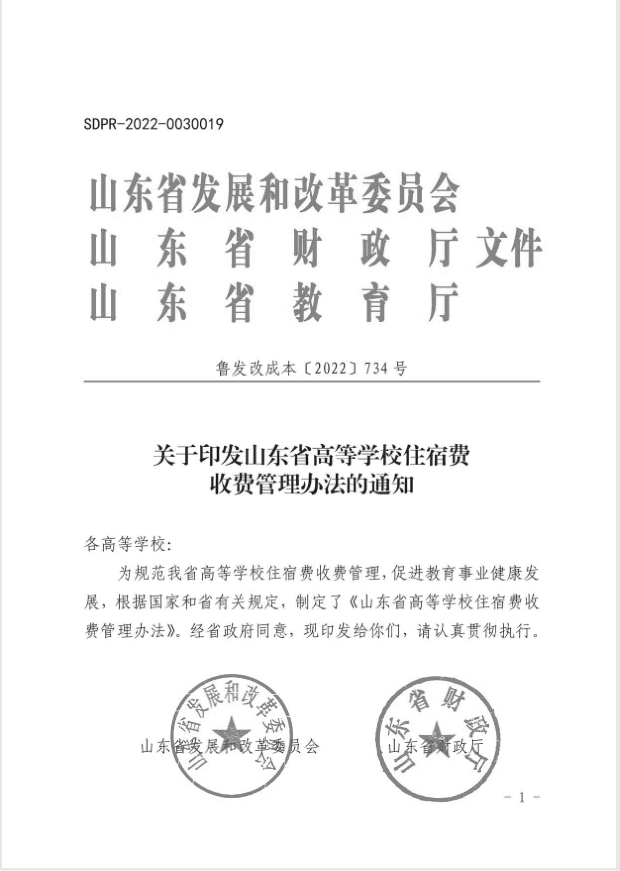 关于印发山东省高等学校住宿费收费管理办法的通知