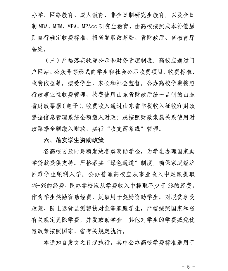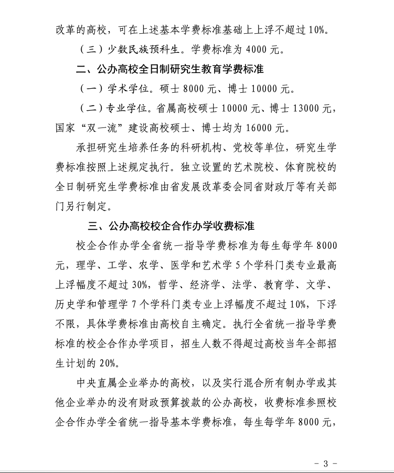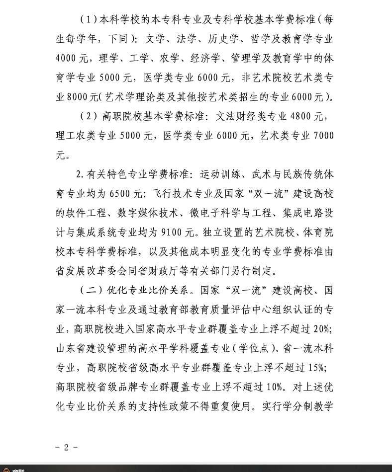 山东省发展和改革委员会、财政厅、教育厅联合发布《关于规范完善高校学费收费政策的通知》