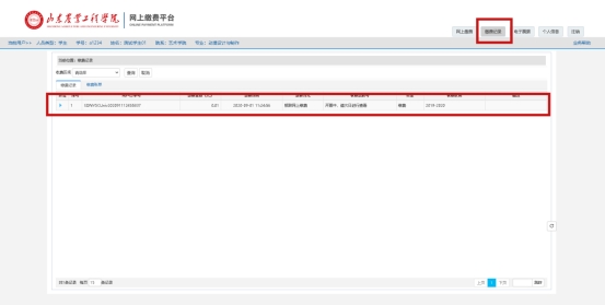 查看缴费记录,显示已缴费的信息。如果未正确显示缴费记录,请返回网上缴费界面,点击【刷新缴费】按钮,进行缴费结果刷新,如果仍查询不到缴费结果信息,请联系学校财务处,切勿重复缴费。
