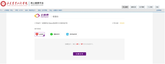 可以选择微信、支付宝、云闪付(即银行卡支付)三种方式进行支付。
