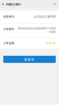 再次确认缴费金额与订单金额是否一致后,点击【去支付】完成缴费过程即可。