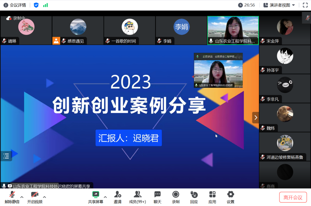迟晓君处长从自身经历以及大学生如何进行创新方面详细进行了经验分享。李娟则对科创大赛进行了详细的政策解读,并从项目申报书、PPT如何撰写等方面进行了辅导。