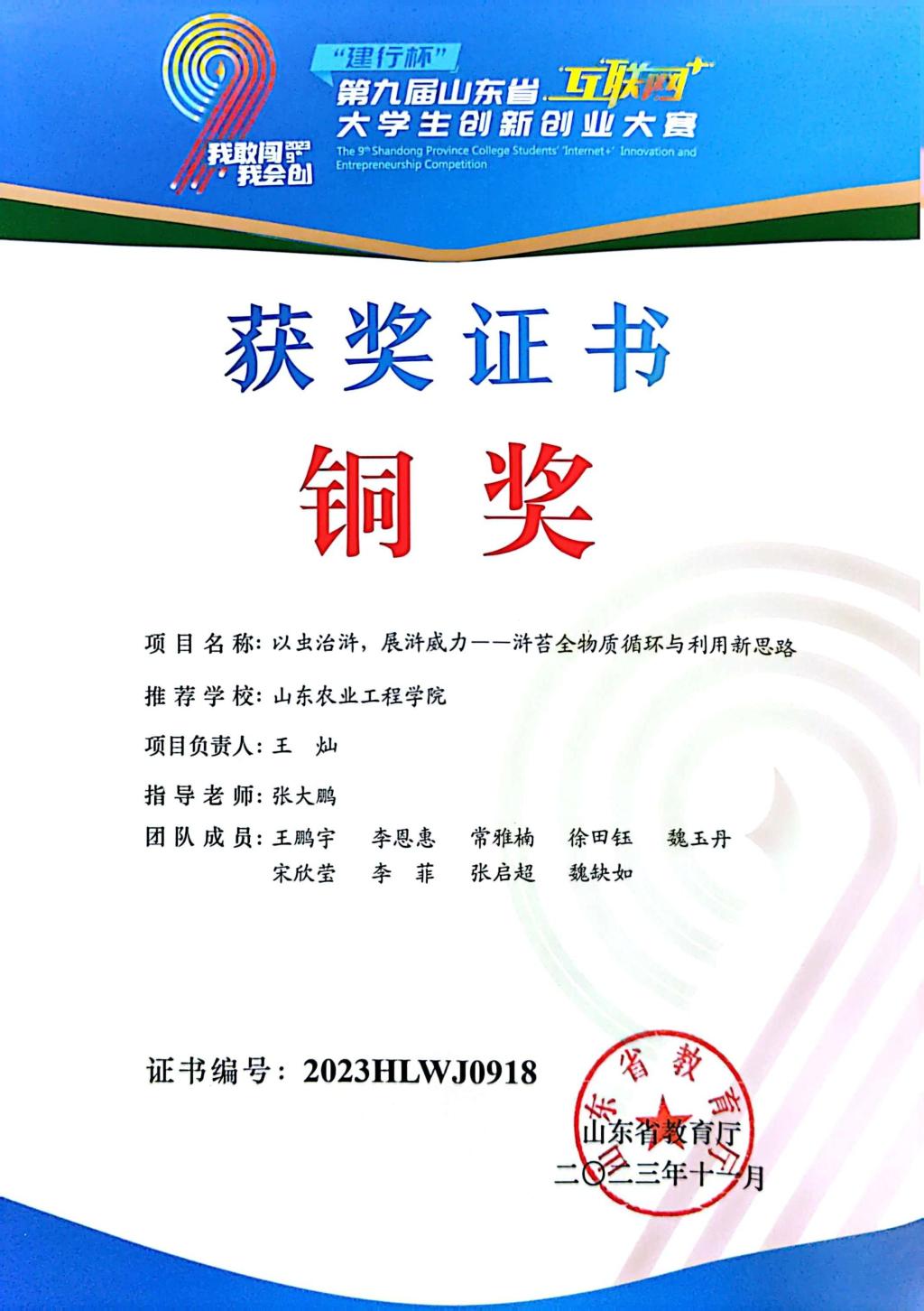 “建行杯”第九届山东省“互联网+”大学生创新创业大赛铜奖项目:以虫治浒,展浒威力--浒苔全物质循环与利用新思路