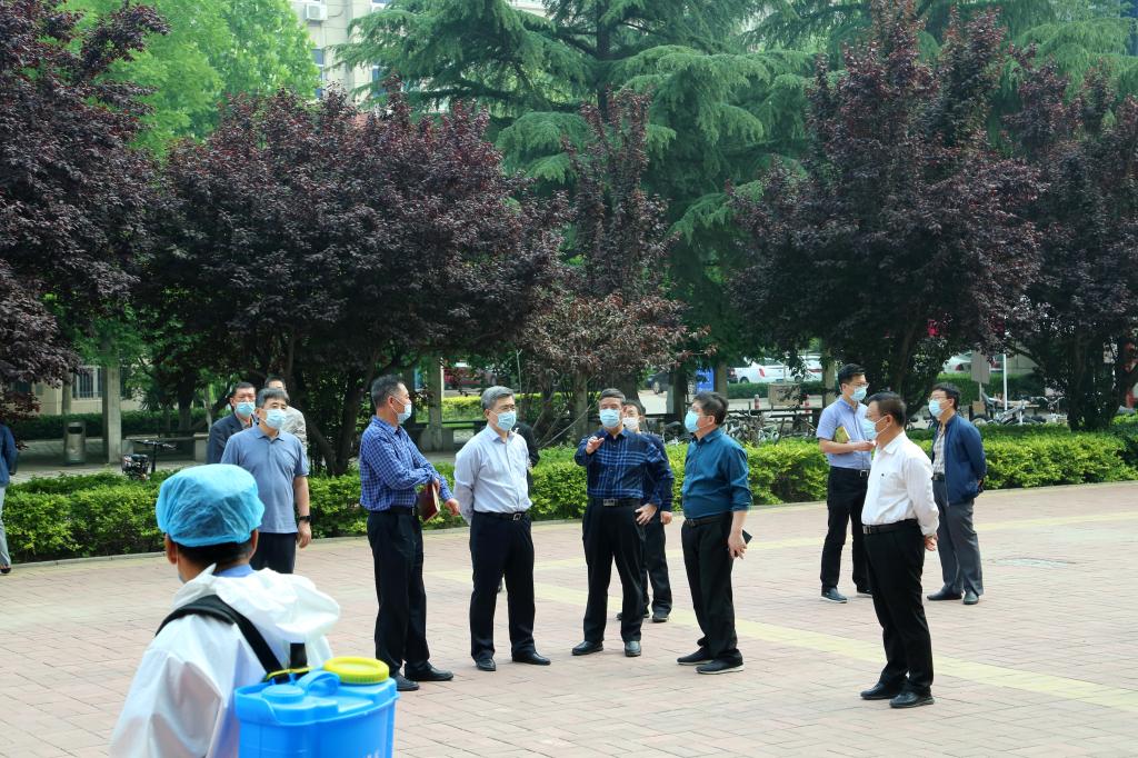 May 16th was the day when the first batch of our graduated students returned to school. The return of teachers and students to the campus is a“great test” for the school's anti-COVID19 work. In order to effectively strengthen the school's epidemic prevention work and ensure that the school resumes is in order,SDAEU organized the third emergency response drill on epidemic management (the 6th in total) on the morning of May 15 in Jinan campus, which is the last time before students back to school. Wang Xikui, deputy secretary of the School Party Committee and President, Zhang Zhaoming, Vice President, Yang Zhenning, School Party Committee member and Vice President, Zhang Wei, School Party Committee member and Vice President, inspected anddirected the drill. The members of the school anti-COVID19 leading group, the heads of each special working group, the secretary of the Party branch of the colleges of Jinan campus, instructors, and liaison officers of various departments participated in the event.