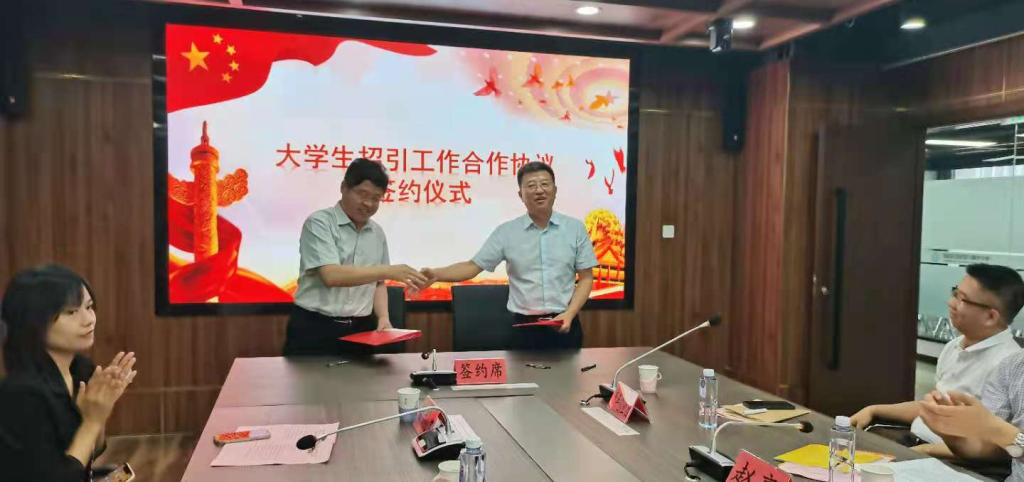 Chen Xianfeng, Director of Student Affairs Office, and Wang Lei, Secretary of the Party Leadership Group and Director of Zhangdian District Human Resources and Social Affairs Bureau, signed a strategic cooperation agreement for the recruitment of college students.