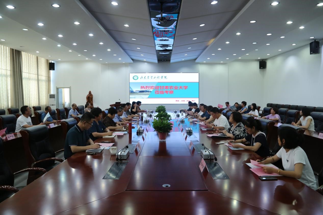 During the meeting, Yang Zhenning welcomed the guests from Gansu Agricultural University and briefed them on the school’s history, general situation of development, personnel training and key work this year. The person in charge of the Academic Affairs Office introduced the construction of discipline and major, teaching reform, and the construction of practice and training conditions. Director of the Laboratory Management Center introduced the laboratory management and operation mechanism, equipment maintenance, experimental teaching and other situations. Director of teaching units introduced the situation in terms of professional characteristics, scientific research, social services and so on. Yuan Zhiwei introduced the Gansu Agricultural University teaching reform, professional development, recruitment and employment.