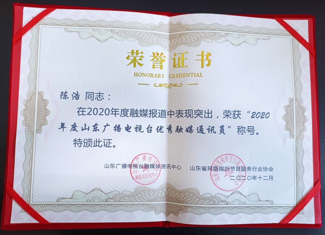 On December 9, the 2021 Shandong Radio and Television Education Industry Innovation and Development Forum and the first financial media influence award award ceremony hosted by the Shandong Radio and Television Media Information Center was held in Jinan. Our school won the "2020 Financial Media Influence Award", Chen Hao, from thePublicity Department of School Party Committee, won the title of "2020 Shandong Radio and Television Outstanding Media Correspondent".