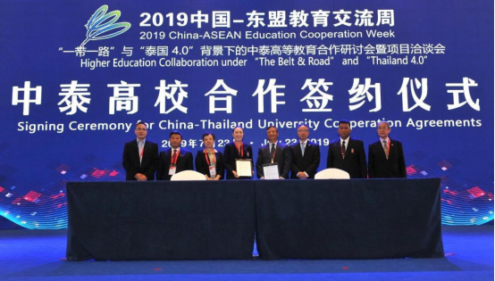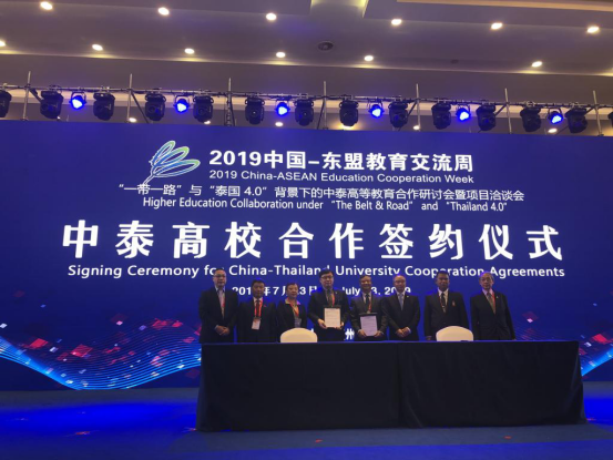 From July 22nd to 24th, President Wang XiKui was invited to attend the2019 China-ASEAN Education Cooperation Week “Opportunity, Challenge and Win-Win Cooperation”--China-Thailand Higher Education Collaboration under the “Belt & Road” and “Thailand 4.0”, and signed a strategic cooperation agreement with Thai cooperative universities under the organization and witness of the China Education Association for International Exchange(CEAIE). Members of the International Exchange and Cooperation College and other departments attended the event.