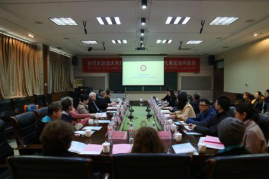 On the morning of the 28th, Phoebe Chen, Director of the Australian Education and Training Association, and 11 membersfrom the TAFE Delegation of New South Wales, Australia visited our school. Vice-President Zhang Zhaoming attended themeeting, and thedirectors of the Academic Affairs Office, the Student Affairs Office, the International Exchange and Cooperation College,theFood Science and Engineering College and some of the teachers and student representatives attended the meeting.