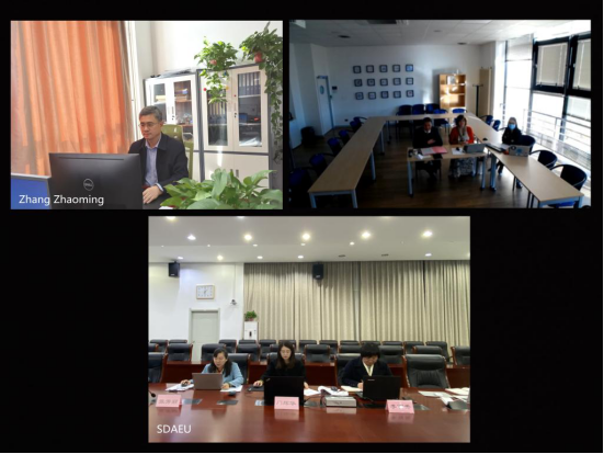 On the afternoon of December 13,SDAEU and Clermont Business School of France gathered in the cloud and held an online signing ceremony. Zhang Zhaoming, vice president ofsdaeu, and Richard Soparnot, vice president of ESC Clermont, attended the signing ceremony and signed the contract online on behalf of the two universities. Heads of the International Affairs Office, School of Economics and Management, School of Business and related personnel of the two universities attended the signing ceremony.