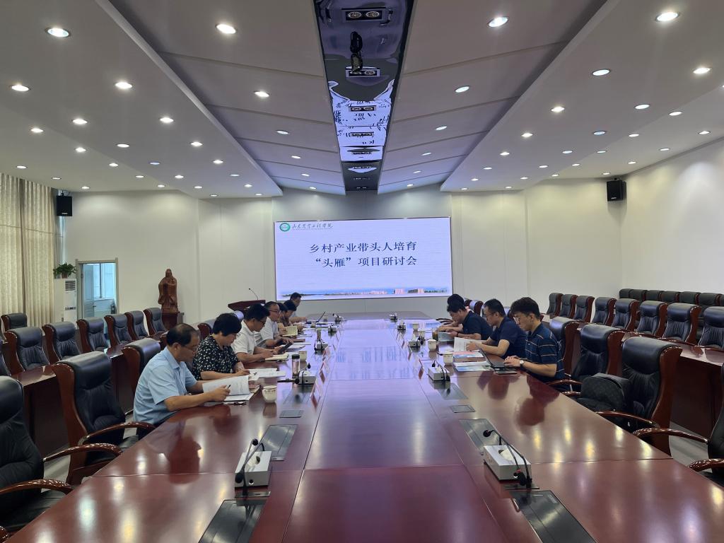 7月21日上午,为推进培训任务高标准实施,学校组织召开乡村产业振兴带头人培育“头雁”项目研讨会。校党委副书记张业赏,党委委员、副校长郑华美,省农广校副校长姜家献出席会议,省农广校有关专家和学校食品科学与工程学院、农业科技学院、经济管理学院、干部进修学院等单位的有关同志参加研讨会。