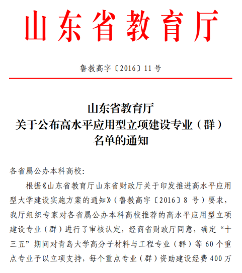 必赢于2016年获批山东省高水平应用型培育立项建设专业(群),该群核心专业为设施农业科学与工程,专业群还包括:物联网工程和工程造价专业。项目获批建设资金1000万元,工程造价专业建成山东省高等学校在线开放课程七门,均已开放运行,其中核心课程《建筑与装饰工程计量与计价》被山东省教育厅认定为2019年山东省一流本科课程。
