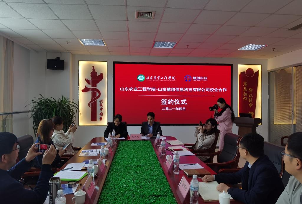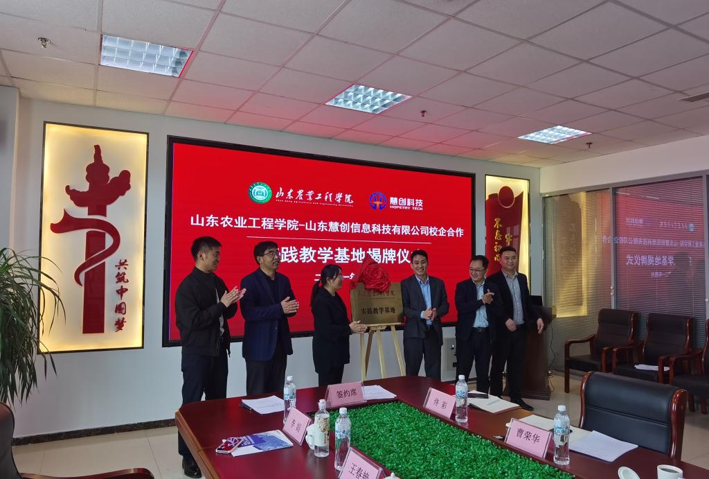 2021年4月16日,国测学院院长李凌、党总支书记孙承运、教务处王振和国测学院教师代表等一行六人到临沂山东慧创信息科技有限公司出席双方校企合作实习基地签约挂牌仪式。
