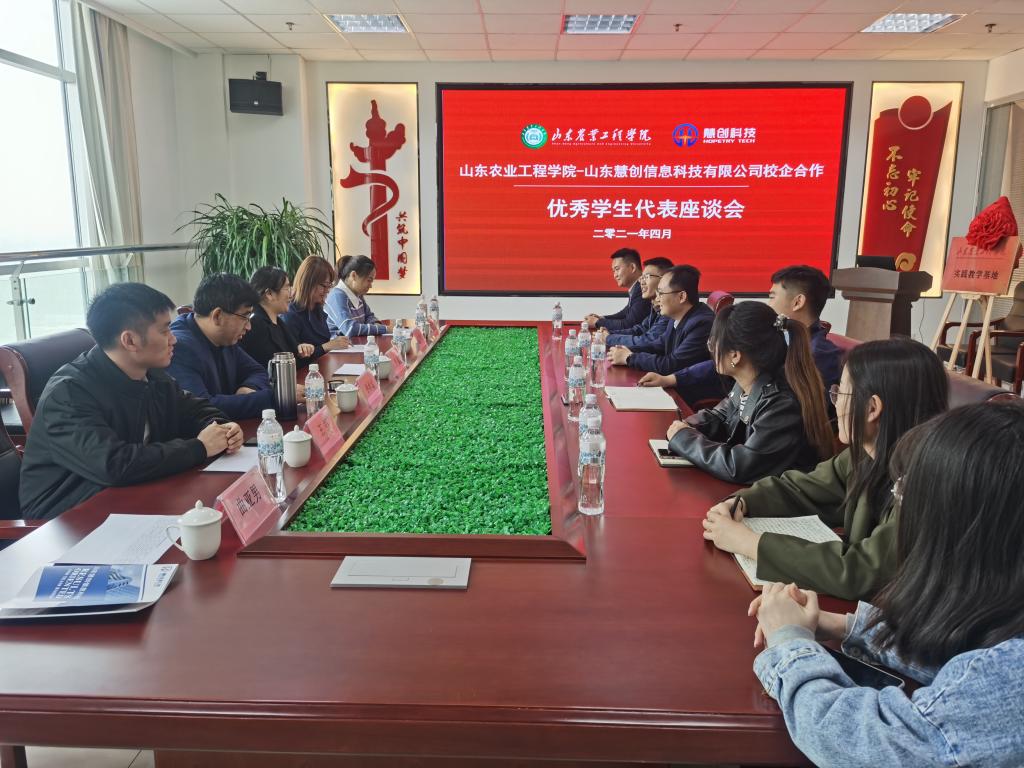 下午李院长、孙书记又和就职在慧创公司的优秀学生代表进行座谈会。在座谈会上李院长鼓励同学们继续保持高昂的学习热情,并给学生们提出了殷切的期望,告诫同学们牢记自己是山工院学子,要时刻记得用校风、校训来约束自己,不虚度光阴。规划好自己的职业方向,并一步一个脚印的抓好落实。此次座谈会在愉快的掌声中结束。