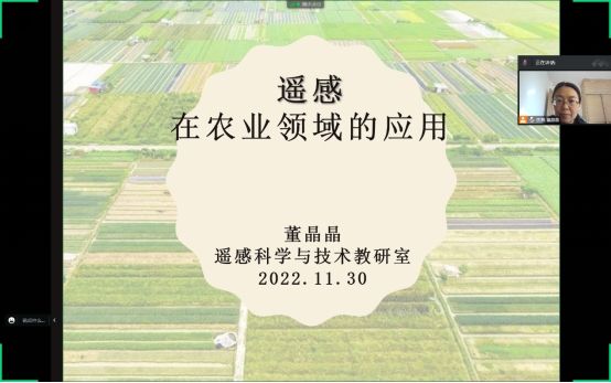 遥感是获取地球资源和环境信息的重要技术手段。我国的遥感技术研究与应用从20世纪70年代开始,至今几十年间取得了显著的进展。本次学术报告以遥感技术在农业领域的应用为主题,面向遥感科学与技术专业的同学介绍了目前我国农业遥感应用的研究现状、热点和发展展望。报告由国测学院遥感教研室主任董晶晶副教授主讲。
