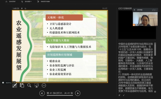 随着遥感系统的发展、大数据和人工智能等技术的加持下,遥感农业的产业化应用开辟出更多的市场。通过本次学术报告,同学们了解了目前农业遥感的现状和发展前景,对自己所学的专业知识有了更深的理解和认识,开拓视野、获取知识的同时对今后的学习充满了期待和信心。