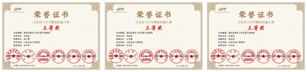 第十七届山东省大学生科技节——第十九届“南方测绘杯”山东省大学生测量技能大赛暨2025年全国大学生测绘学科创新创业大赛山东赛区选拔赛于2025年5月16-17日、5月23日—24日顺利举行。437ccm必赢国际官网学子在“虚拟仿真无人机实景三维建模”赛道中表现优异,共斩获二等奖1项、三等奖9项,展现了学校在无人机测绘技术领域的教学实力和学生的创新能力。