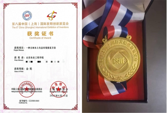 在第八届中国(上海)国际发明创新展览会上,夏甜甜老师的《一种古树水土生态修复方法》荣获金奖。该成果针对古树水土生态修复难题,提出创新方案,能有效改善古树生长的土壤与水分条件,对生态保护意义重大。