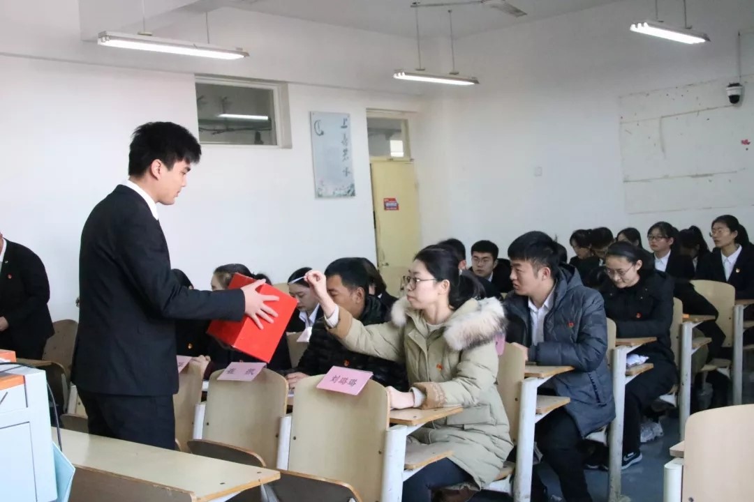 为了响应党的号召,培养优秀党员,我院学生党支部于2019年12月11日上午召开国测学院学生党支部预备党员转正大会。大会讨论了关于国测学院18名同志申请转为正式党员的事宜。我院团支部书记崔凯老师、学生党支部书记李娟老师、辅导员李华老师、刘璐璐老师以及各位党支部成员出席本次会议。