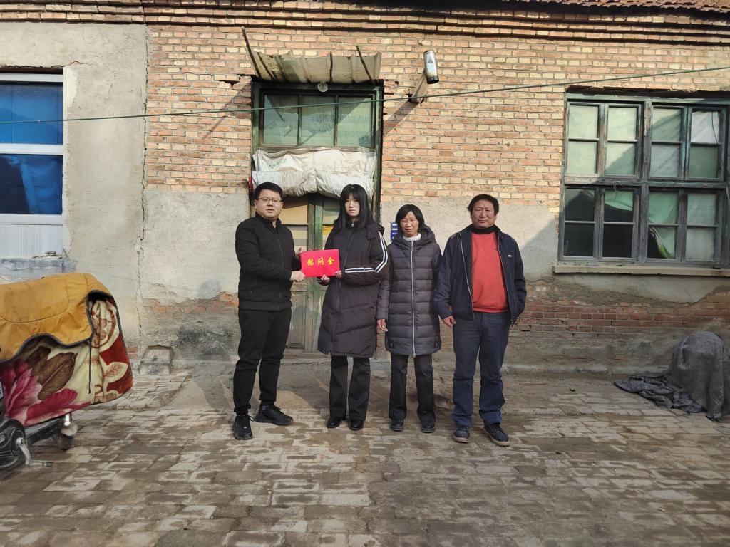 团总支书记崔凯老师、辅导员田则军老师、李浩福老师等一行3人,对5位家庭困难学生进行走访,并送去慰问金,解困难学生春节生活的燃眉之急。老师们与家长促膝谈心,谈学生在校情况,聊家庭日常生活,话语中传递关心和温暖,同时还向家长全面解读了国家和学校各类资助政策和具体措施,把国家资助政策讲到家。家长感受国家政策福利,憧憬美好未来,学生也自省自励:努力学习、不负韶华,担当责任、奉献社会。