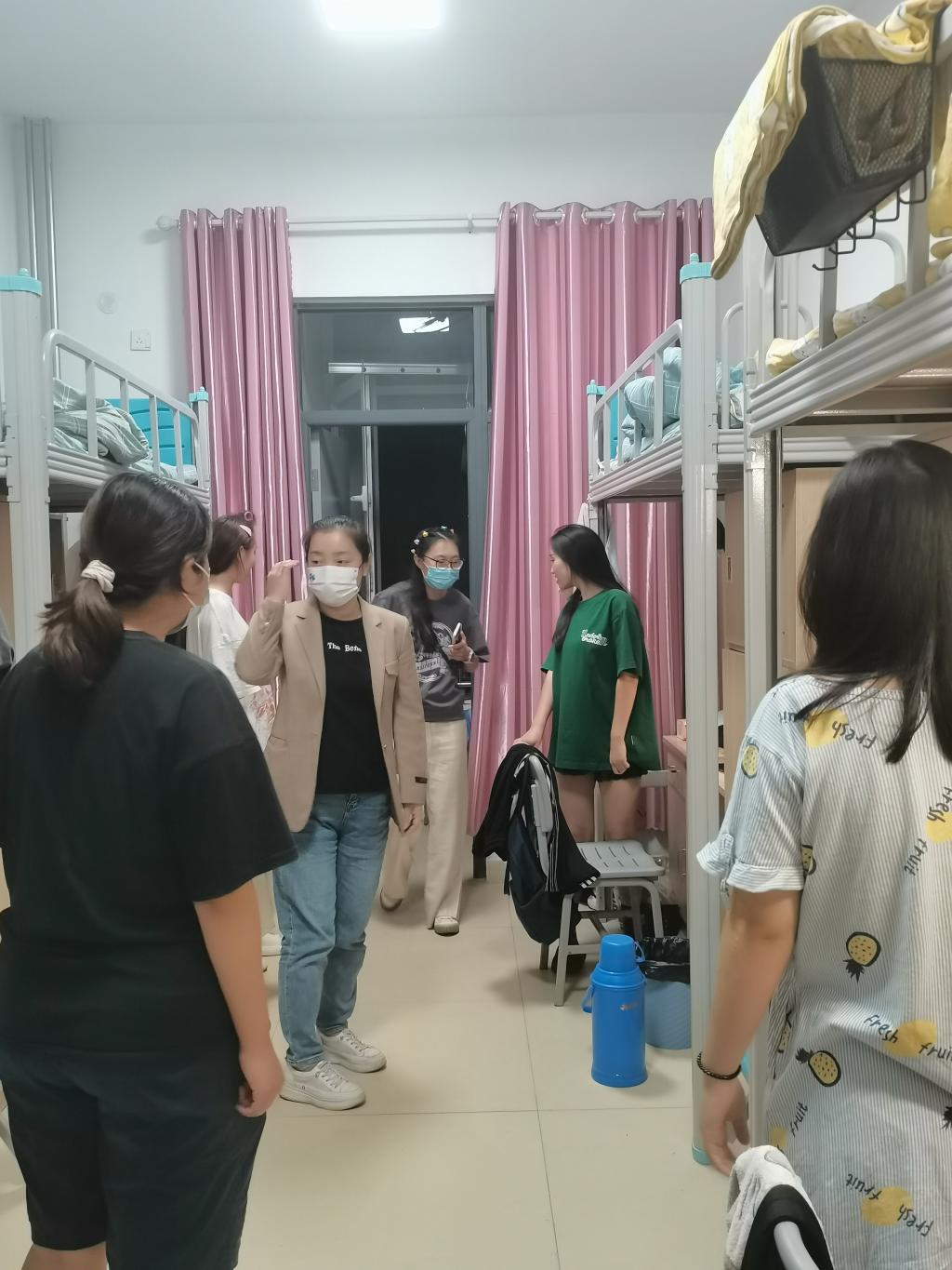院领导每进入一间宿舍,都会叮嘱在场的同学们,在疫情防控常态化背景下,希望大家理解并自觉遵守学校疫情防控管理规定,涵养良好心态、注意宿舍卫生、保持整洁干净的生活环境、做好个人防护、增强个人安全意识、绷紧疫情防控之“弦”。如遇到困难要及时向辅导员老师反映,学院会在第一时间做好部署和安排。尽最大的努力,为同学们提供良好的学习环境与生活环境,努力做好服务保障工作。