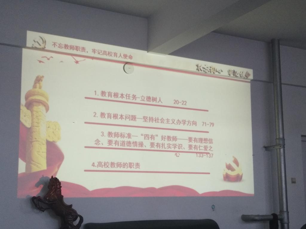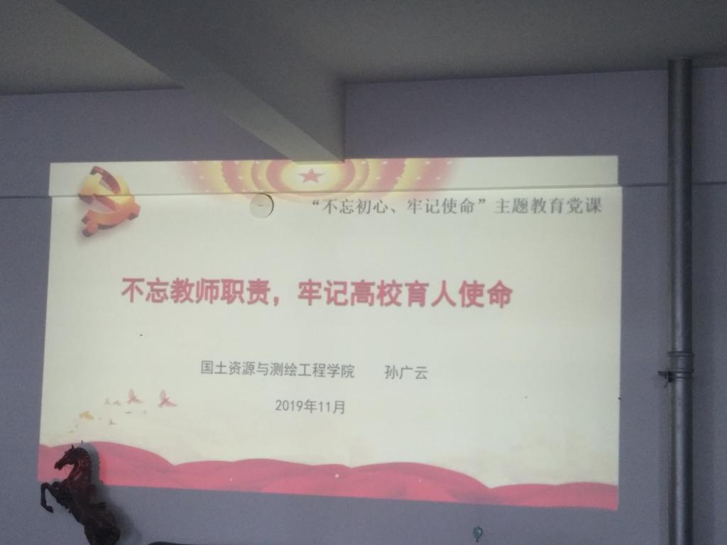 2019年11月14日下午2:10,我院党总支副书记、院长孙广云教授给全体党员讲党课,党课的题目是“不忘教师职责,牢记高校育人使命”。党课从不忘初心、牢记使命出发,引出教师职责,落实育人使命,落脚于精细化完成本职工作,争先创优。党课内容系统、完整、具体,理论教学有深度,细节教学到页码,到达了深入浅出、说理透彻、工作实用的效果。