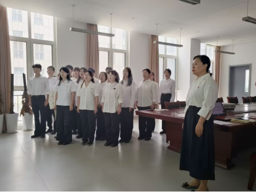 党课上,李娟深入阐释中央八项规定核心内容,围绕改进调研、精简会议等方面,解读党的自身建设要求。针对学生党员工作中存在的铺张浪费、会议冗杂、特权思想等问题,提出“会议短、调研实、花费省” 的作风建设要求,构建自我、朋辈、组织三级监督体系,并将作风表现纳入学生党员考核,全面加强作风建设。最后,全体学生党员集体宣誓,坚定践行中央八项规定精神的决心。