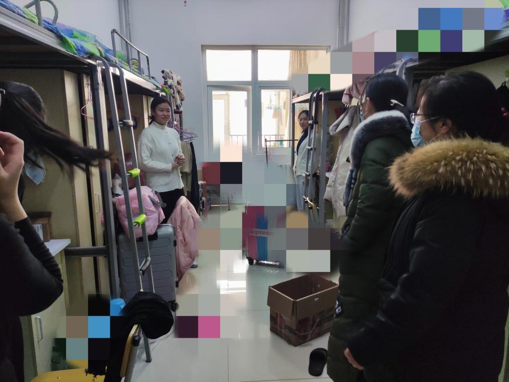 两位老师在班干部的带领下,来到宿舍询问同学们的离校时间、离校方式及离校准备情况,嘱咐同学们在回家路上做好个人防护,并与河北、黑龙江等省份的同学对当地的疫情问题进行了交流。