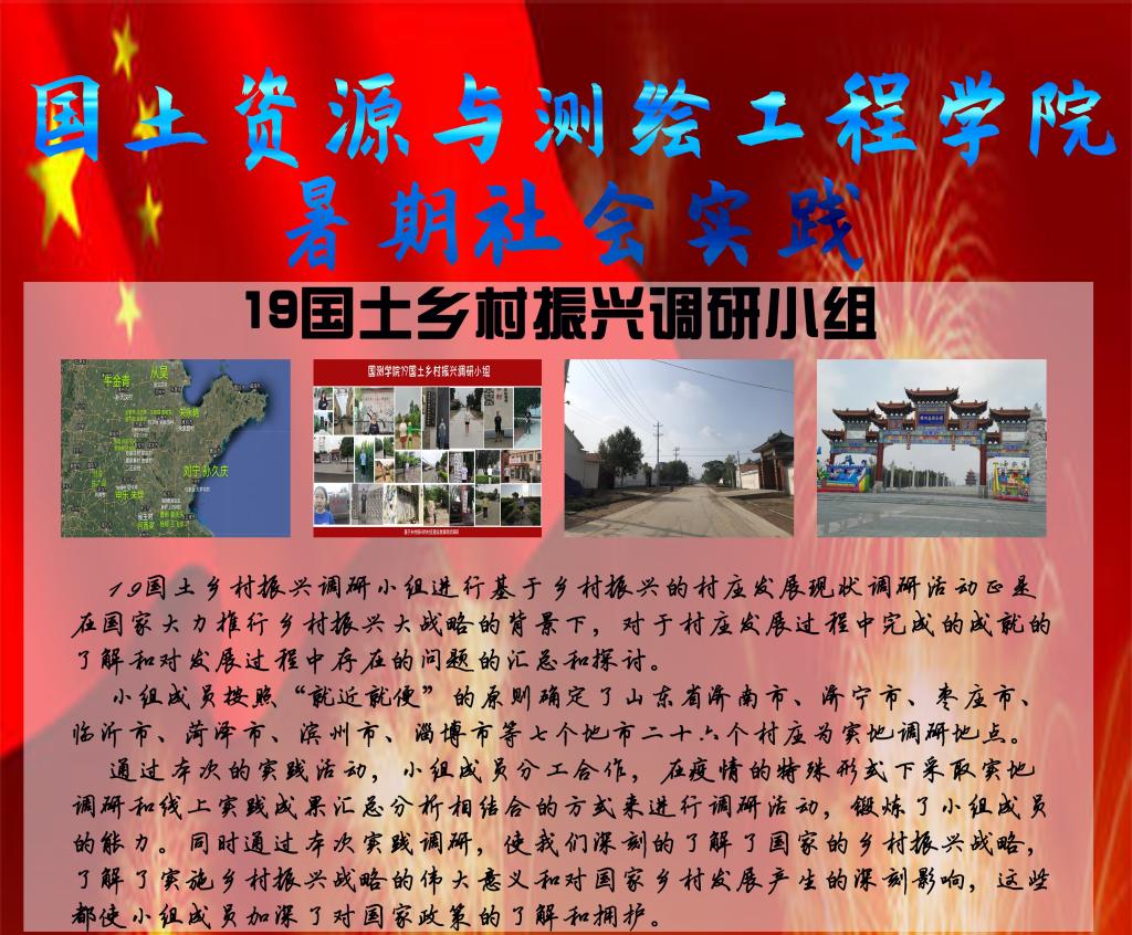 19级国土1、2班学生组建的社会实践小组——“乡村振兴村庄现状调研小组”荣获437ccm必赢国际官网2020年暑期“三下乡”社会实践活动“先进社会实践团队”称号,本次社会实践活动的指导老师肖肖老师荣获“社会实践优秀指导教师”。