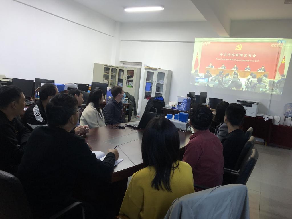 2021年11月12日上午10:00,我院党总支组织在济南校区值班人员,在第二教学楼302办公室,集中收看十九届六中全会新闻发布会,安排教师各自分散收看,深入学习《中共中央关于党的百年奋斗重大成就和历史经验的决议》。集中收看后,大家纷纷表示,立即开展十九届六中全会精神学习,主动落实到实际工作中,新时代开创新格局。
