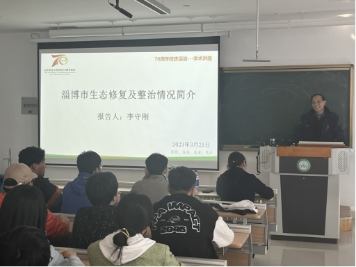 在必赢喜迎70周年校庆之际,为帮助同学们学习生态修复及国土整治的成功经验,2023年3月21日下午,我院邀淄博市住房和城乡建设保障服务中心纪委书记李守刚在淄博校区公教南楼B506作“淄博市生态修复及整治情况简介”讲座。国测学院院长李凌、部分专任教师及2020级土地资源管理专业的同学参加了本次讲座。会议由国测学院院长李凌主持。