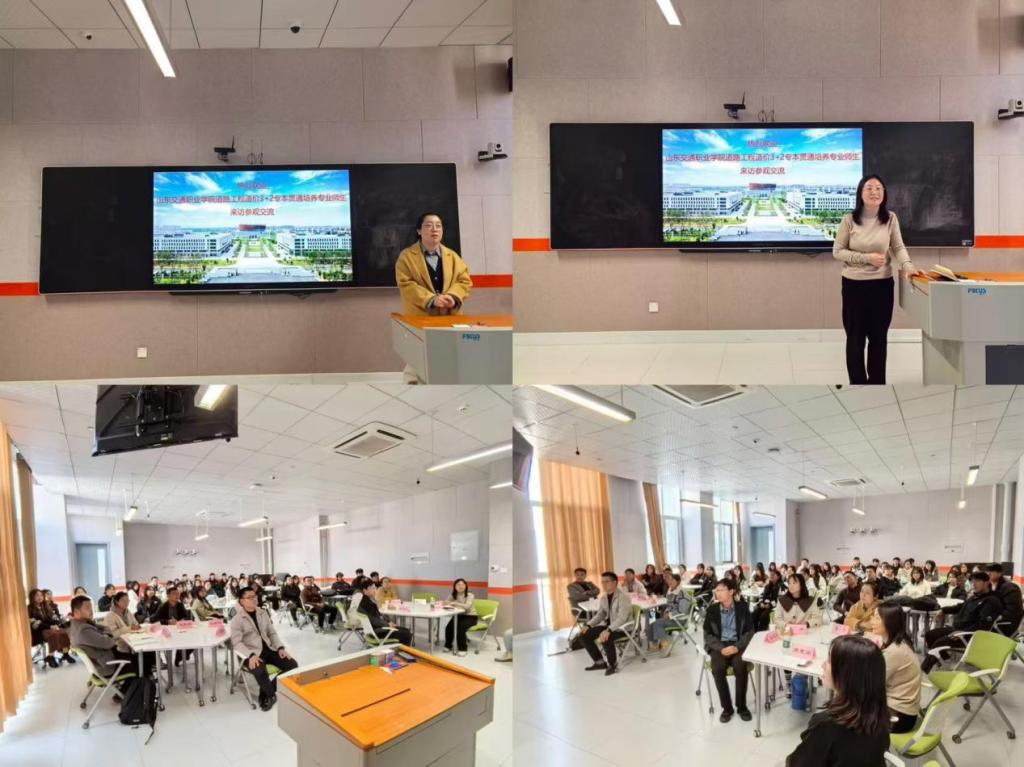 11月7日,山东交通职业学院公路与建筑学院造价(3+2)专业负责人杨青潮、公路与建筑学院教师秦丹、张厚江、王田华、陈帅超及道路工程造价3+2专本贯通专业39名学生来我院进行研学活动。我院院长张忠峰、党总支书记李华、工程造价与管理教研室主任李伟、副主任周楚涵及骨干教师王运兴、高杰、宋国娇、李国一参加了交流会议。