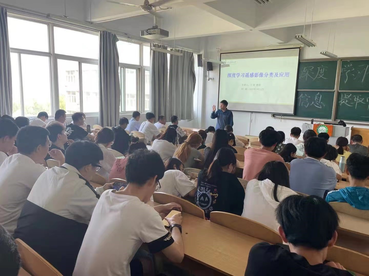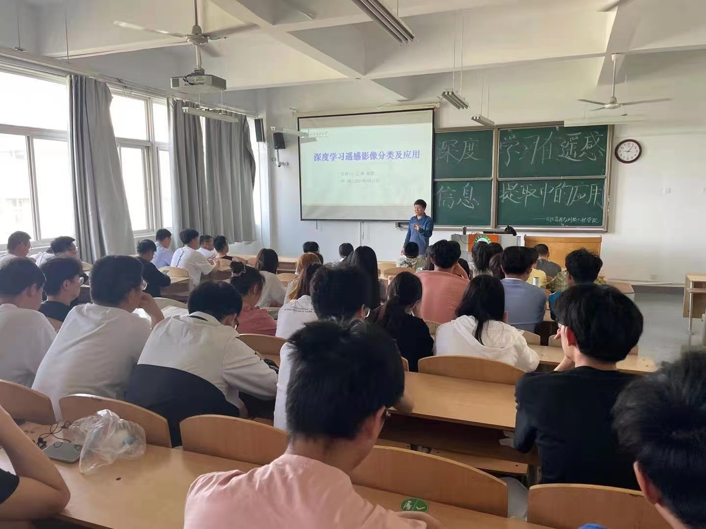 2021年5月22号上午9:00,山东科技大学江涛教授在济北校区2号教学楼5-3教室作了题为《深度学习在遥感信息提取中的应用》的学术报告。报告由国测学院教师乔泽宇主持,我院遥感专业的学生参加了此次学术报告。